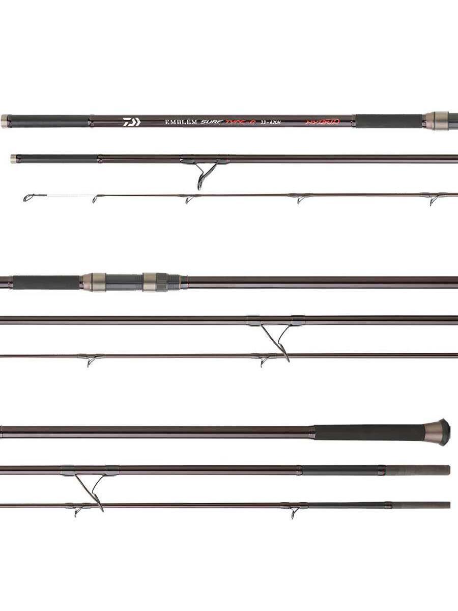 Emblem Surf Type R, eşit elemanlara sahip çok ince bir boşluk ve sörf balıkçılarının balık tutarken maksimum eğlenmelerini sağlayacak azaltılmış bir ağırlık sunar. "Hibrit" olarak adlandırılan katı uçlu modeller, gece balıkçılığı sırasında görünürlüğü kolaylaştırmak için fosforlu bir boya tabanı üzerinde yansıtıcı bir bant sargısı ile donatılmıştır. Ayrıca, bu ünlü melez uçların, ucun küçük dikkatli balık sürgünlerine tepkisini arttırmak ve çubuğu turnasına yerleştirirken çok belirgin bir harekete sahip olmak için ucunda tek ayaklı bir halka ile donatıldığına dikkat etmek de önemlidir. Bu çubuğun tasarımı, Emblem Surf Type-R makaralarıyla mükemmel bir şekilde eşleşecektir.
