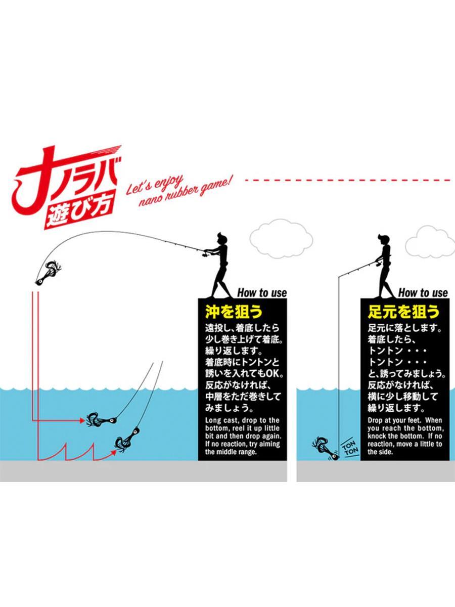 Major Craft tarafından kıyı ve LRF avcılarını Tai Rubber zevkinden mahrum etmemek üzere üretilmiştir. 1.5-2-3-5-7-10 gram olarak üretilen Nano Rubber' lar ufak, ama bir o kadar da cezbeden aksiyona sahipler. Kafa şekli iyi su keskinliğine sahip, bu nedenle su altında sabit, en ufak kamış hareketinde ise kıvrak hareketler sergilemektedir. Kıvırcık şekilli etek, 2 adet gayet keskin ve avcı Japon iğnesi, ve kolay iğne değişim klipsiyle donatılan Nano Rubber ' lar etek hareketi ve kıvrak hareketleriyle balıkları baştan çıkarır. Ağırlık merkezli kafa ile düşme duruşu sabit olduğundan, düşme sırasında aksiyon verebilirsiniz.