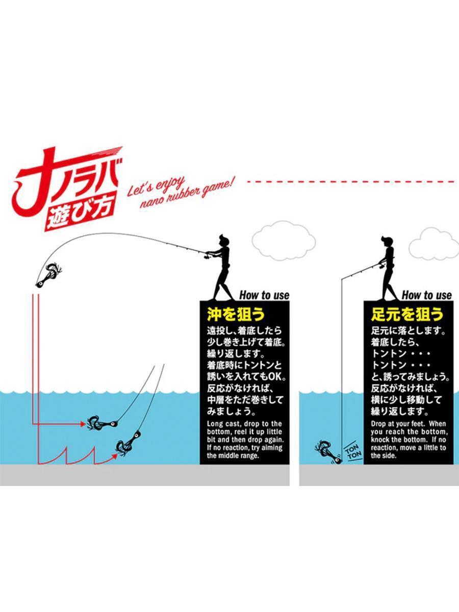 Major Craft tarafından kıyı ve LRF avcılarını Tai Rubber zevkinden mahrum etmemek üzere üretilmiştir. 1.5-2-3-5-7-10 gram olarak üretilen Nano Rubber' lar ufak, ama bir o kadar da cezbeden aksiyona sahipler. Kafa şekli iyi su keskinliğine sahip, bu nedenle su altında sabit, en ufak kamış hareketinde ise kıvrak hareketler sergilemektedir. Kıvırcık şekilli etek, 2 adet gayet keskin ve avcı Japon iğnesi, ve kolay iğne değişim klipsiyle donatılan Nano Rubber ' lar etek hareketi ve kıvrak hareketleriyle balıkları baştan çıkarır. Ağırlık merkezli kafa ile düşme duruşu sabit olduğundan, düşme sırasında aksiyon verebilirsiniz.