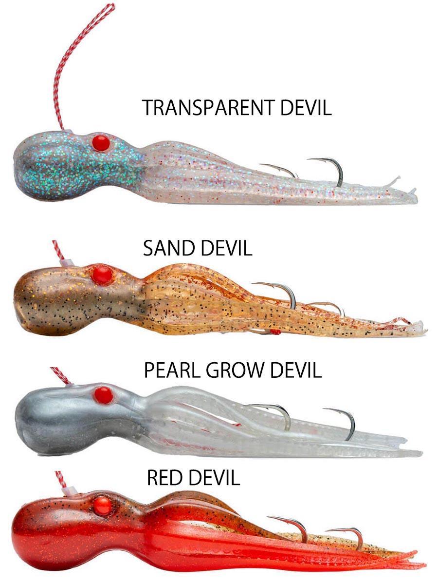 Double Assist hileli Mini InkVader Jig, InkVader'ın bilindiği aynı kanıtlanmış, gerçeğe yakın TPE gövdesi ile balıkçılara teknik ve sunum için daha fazla seçenek sunar. Orijinal InkVader'a benzer şekilde, bu jig'in yardımcı kancaları, dokunaçlar arasında yan yana asılı kalır ve aksiyonun içinde saklanır. Kısa, yavaş jigging, InkVader'a en gerçekçi aksiyonu sunar. 20 g çinko ağırlığına sahip yemler kırmızı bir göze sahipken, altın göz 30 g kurşun ağırlıklı jiglerde bulunur.