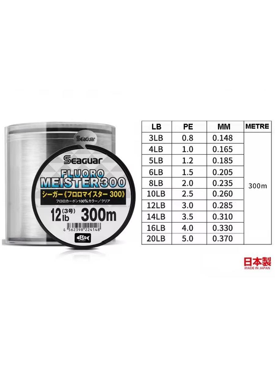 SEAGUAR Fluoro Meister fluorocarbon, piyasaya sürüldüklerinden bu yana performans ve güvenilirlik açısından sağlam bir üne kavuşmuştur. Tüm bu fluorocarbonların ortak özelliği, kırılma indekslerinin neredeyse suyla aynı olması ve suya batırıldıklarında neredeyse görünmez olmalarıdır. Çaplarına kıyasla kopma gerilmeleri son derece güçlüdür, ayrıca iyi düğümlenirler ve yorulmaya karşı yüksek direnç gösterirler. Her 75 metrede bir bobinde kaç metre kaldığını gösteren etikeler bulunmaktadır.