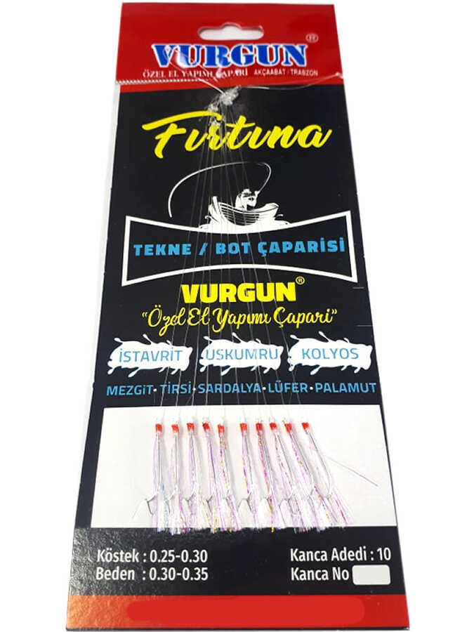 Vurgun çaparileri tekneden dikey avlanma şekline uygun olarak tasarlanmış tamamen el emeği ile hazırlanan özel çaparilerdir. 1nci sınıf kaliteli malzelerden hazırlanan bu özel çapariler İstavrit, Tirsi, Uskumru, Kolyoz, Sarıkanat, Çinekop, Mezgit gibi balıkların avlarında kullanıma uygundur. Vurgun Çapari ürünlerinde av sırasında kanca çıkması ve köstek kayması yaşanmaz. Ürün ambalajı patentli tasarıma sahip olduğu için kolay açılma özelliğine sahiptir.